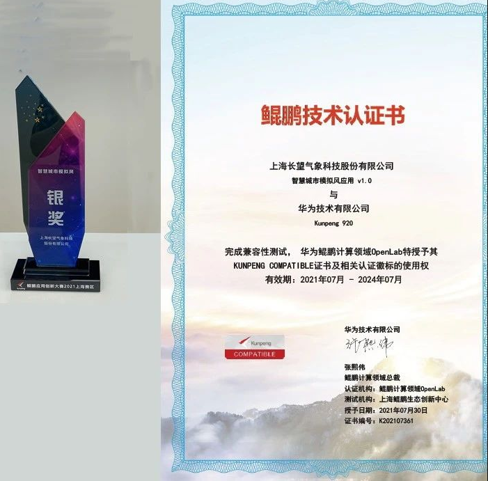 上海長望氣象科技股份有限公司榮獲2021鲲鵬應用創新大賽銀獎